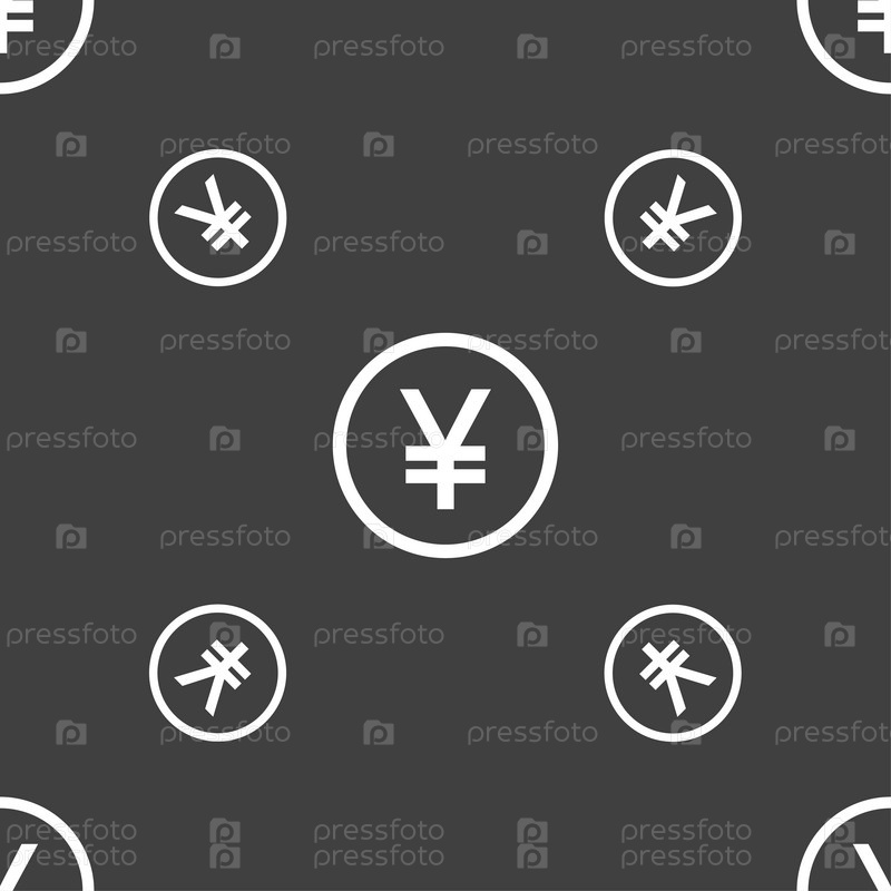Японские Юань значок знак. Бесшовный узор на сером фоне. Вектор