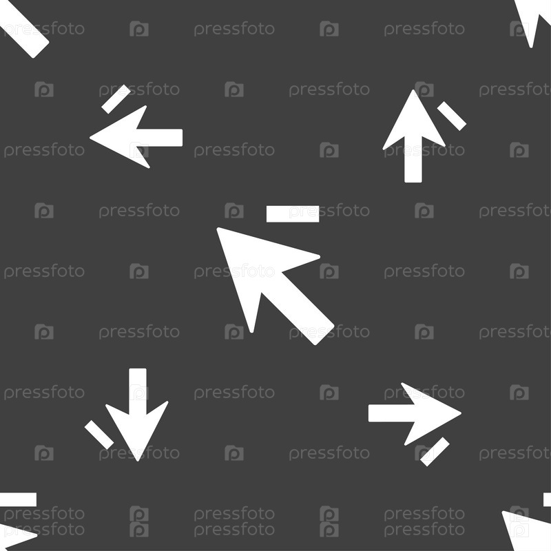 Курсор, стрелкой значок знак минус. Бесшовный узор на сером фоне. Вектор
