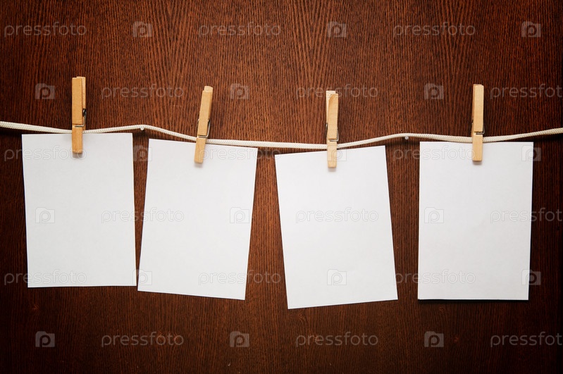 Белые стикеры на прищепках на деревянном фоне