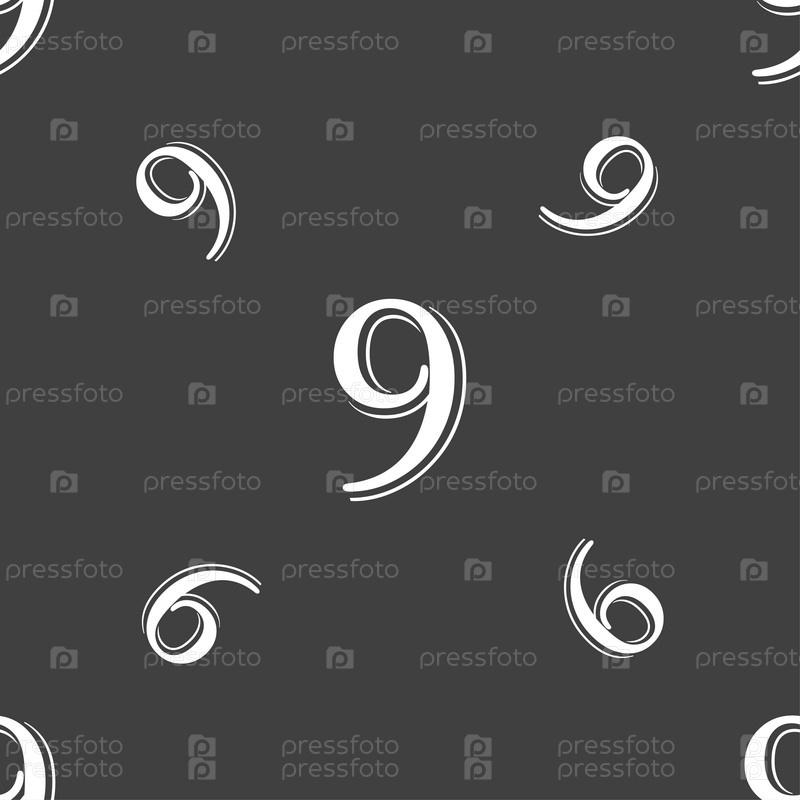 Номер девять значок знак. Бесшовный узор на сером фоне. Вектор