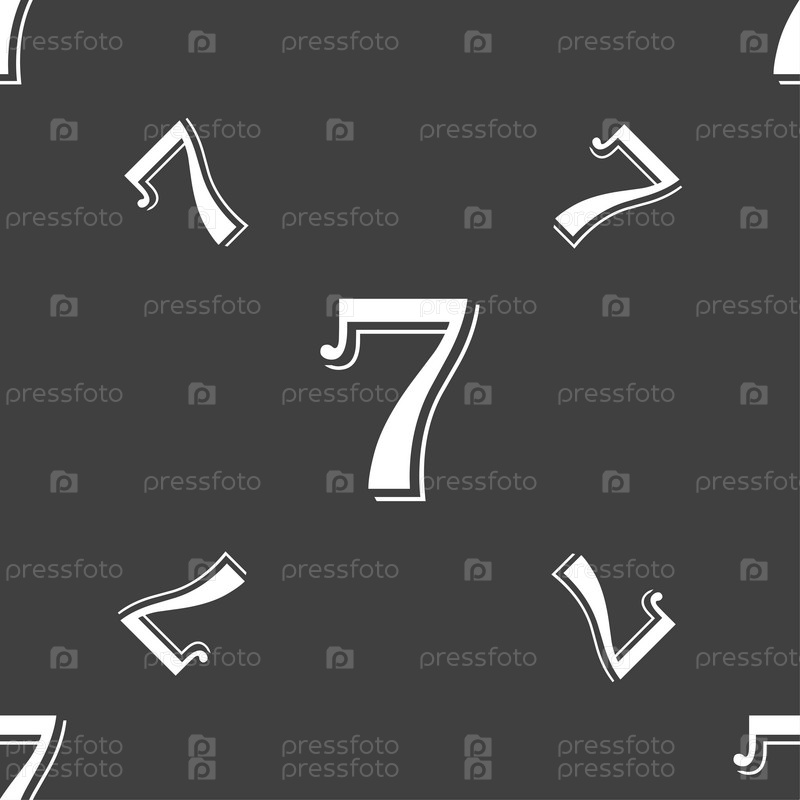 Число семь значок знак. Бесшовный узор на сером фоне. Вектор
