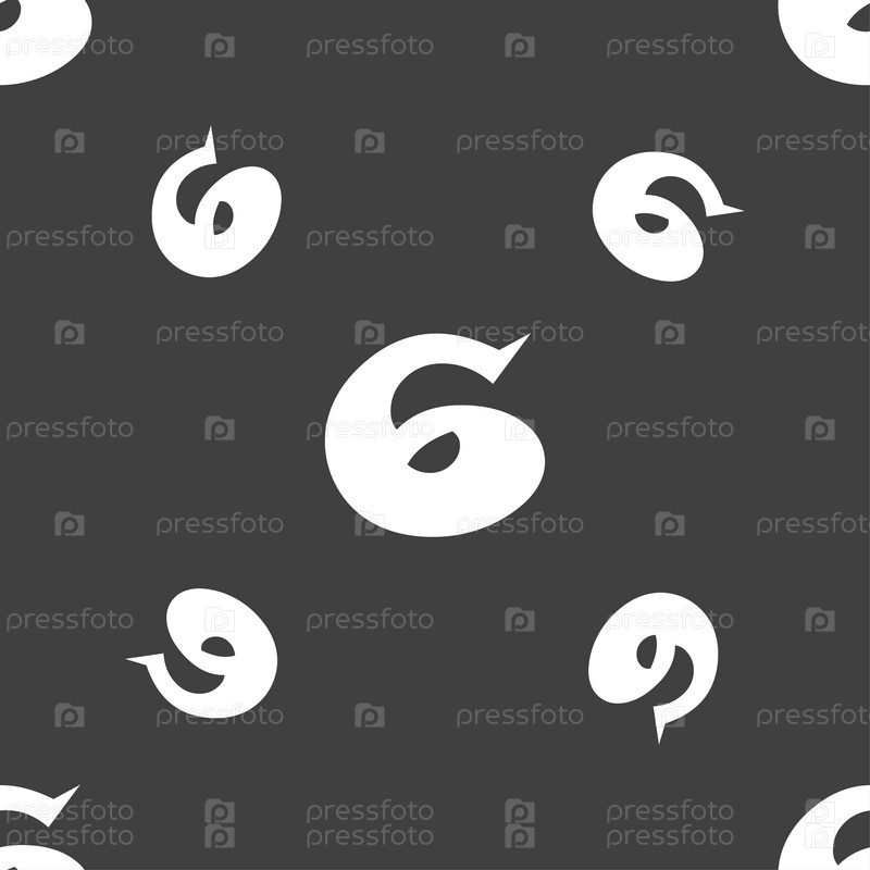 Номер шесть значок знак. Бесшовный узор на сером фоне. Вектор