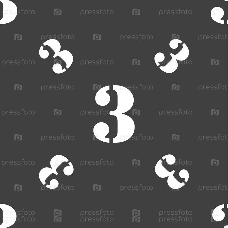 Третье место знак премии. Победитель символ. Шаг 3. Бесшовный узор на сером фоне. Вектор