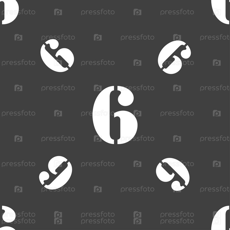 Номер шесть значок знак. Бесшовный узор на сером фоне. Вектор
