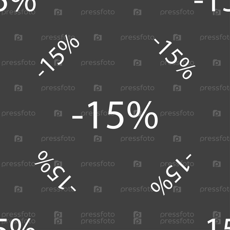 15% скидка знак значок. Продажа символ. Специальное предложение метка. Бесшовный узор на сером фоне. Вектор