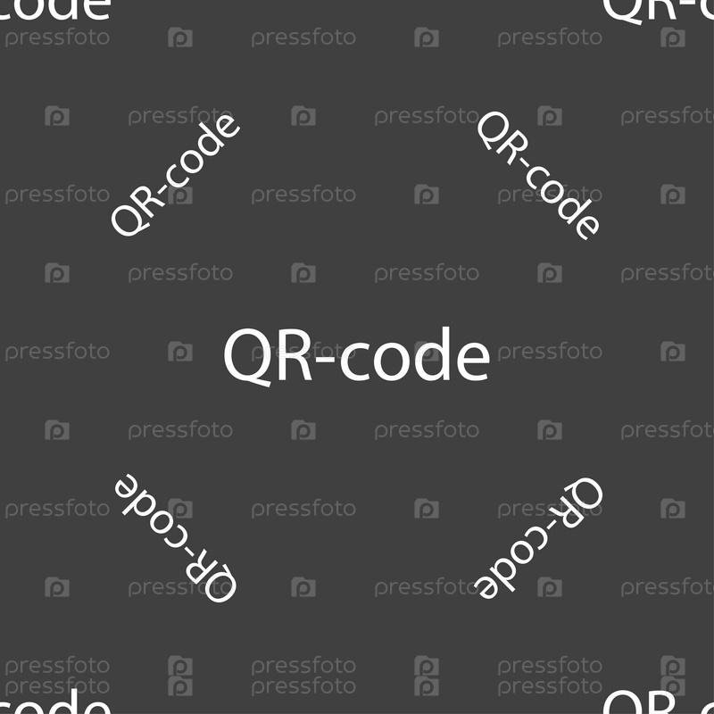QR-код знак значок. Проверка кода символа. Бесшовный узор на сером фоне. Вектор
