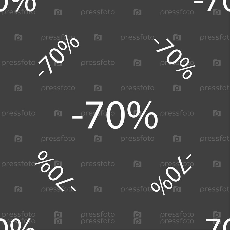 70% скидка знак значок. Продажа символ. Специальное предложение метка. Бесшовный узор на сером фоне. Вектор