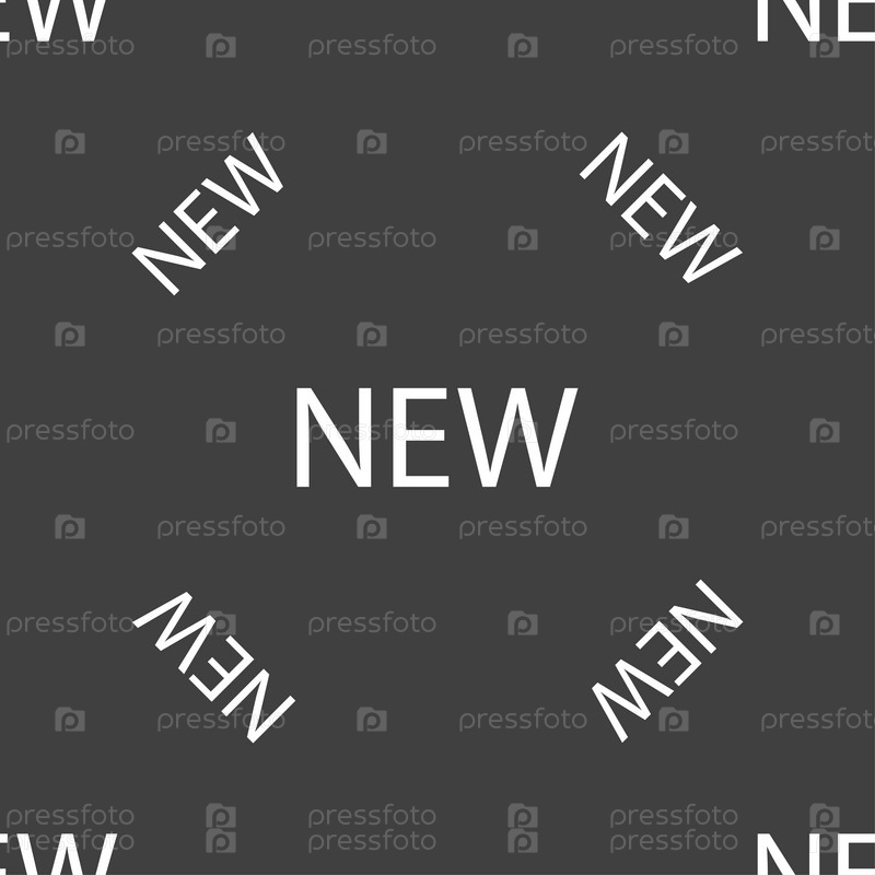 Новый знак значок. символ кнопки прибытия. Бесшовный узор на сером фоне. Вектор