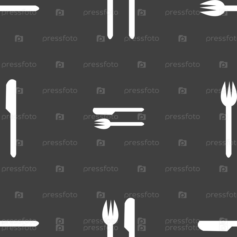 Вилка и нож. Бесшовный узор на сером фоне. Вектор
