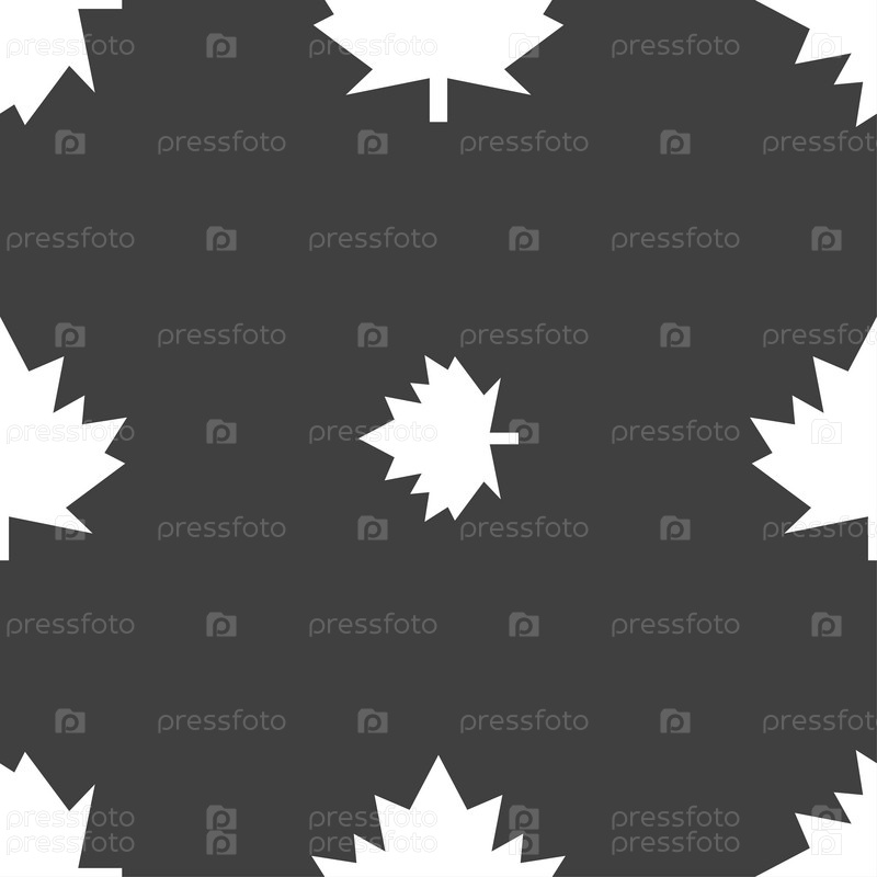 Кленовый лист значок. Бесшовный узор на сером фоне. Вектор