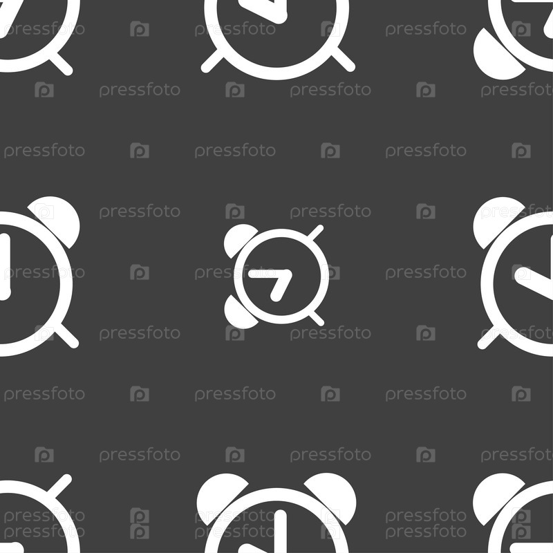 Будильник. Бесшовный узор на сером фоне. Вектор