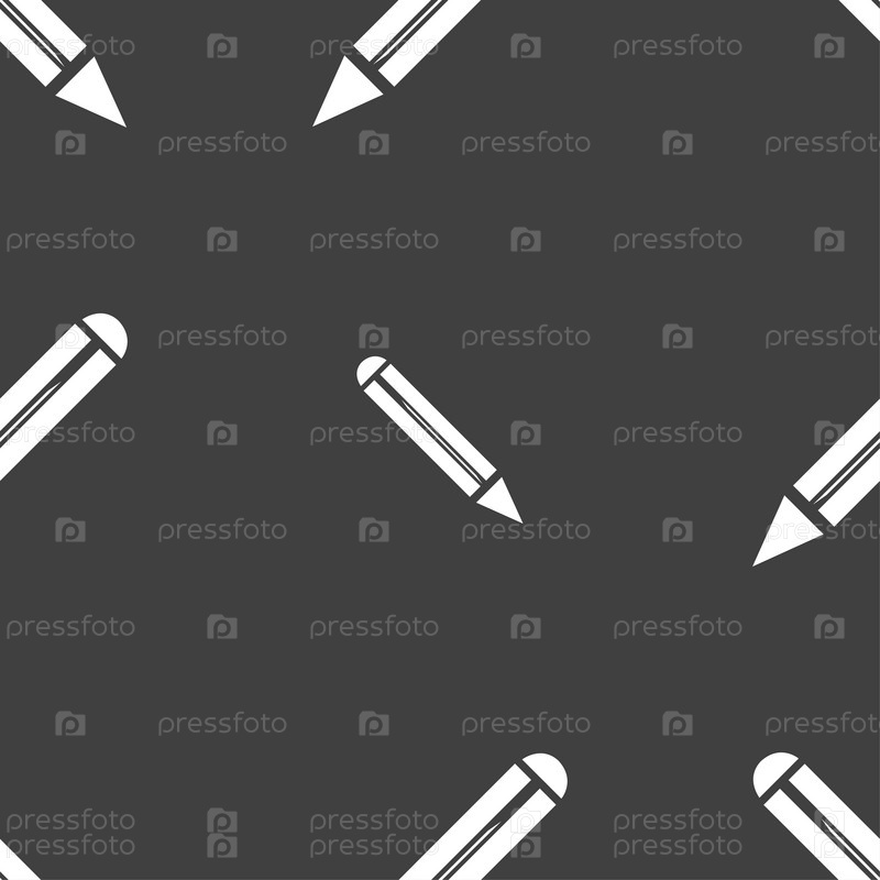 Значок карандаша. Бесшовный узор на сером фоне. Вектор