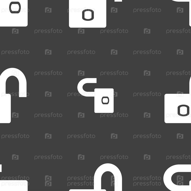 Значок замка. Бесшовный узор на сером фоне. Вектор