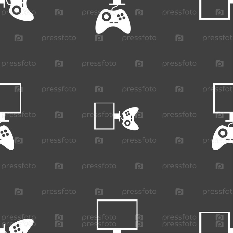 Джойстик и монитор. Бесшовный узор на сером фоне. Вектор