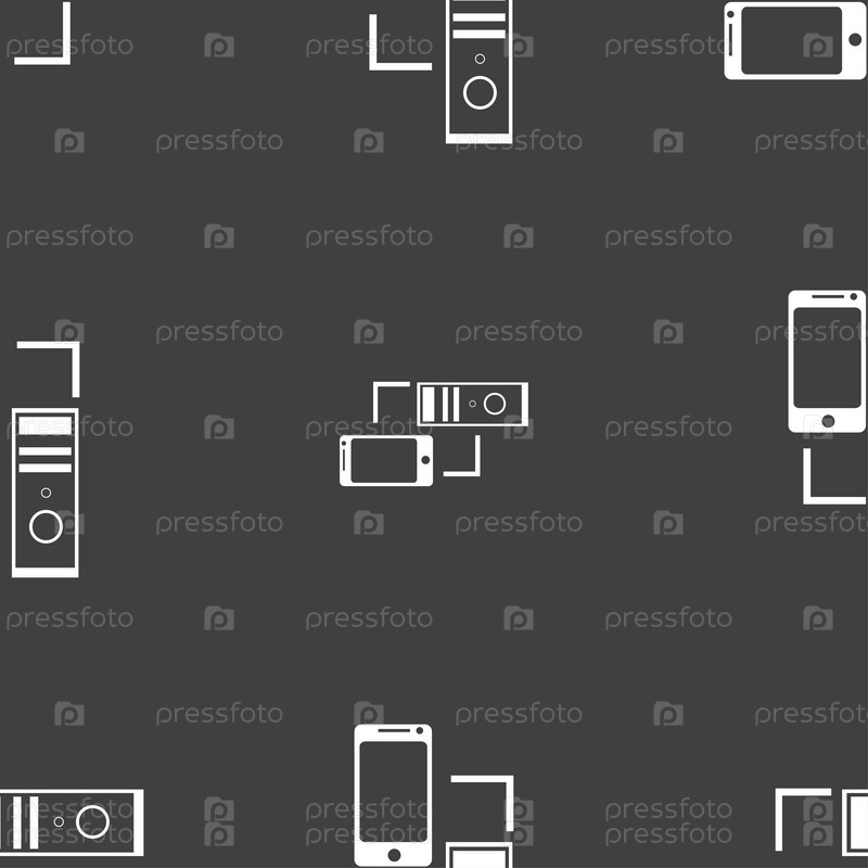 Обмен данными. Бесшовный узор на сером фоне. Вектор