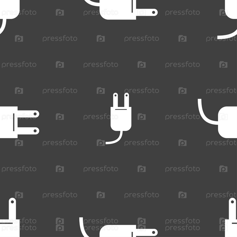 Электрическая вилка. Бесшовный узор на сером фоне. Вектор