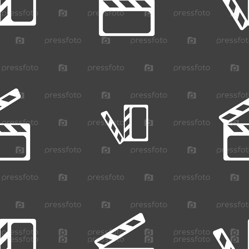 Кино Клаппер. Бесшовный узор на сером фоне. Вектор