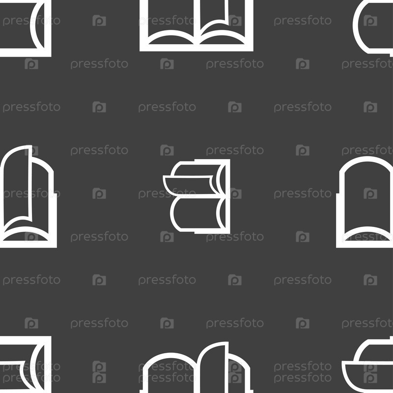 Открытая книга символ. Бесшовный узор на сером фоне. Вектор