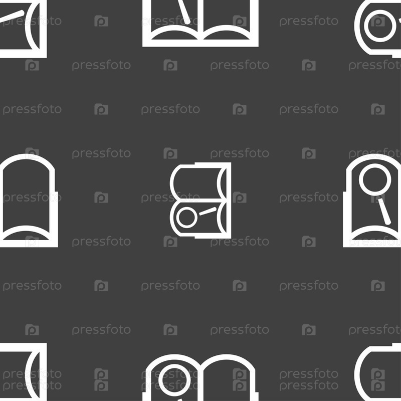 Открытая книга символ. Бесшовный узор на сером фоне. Вектор