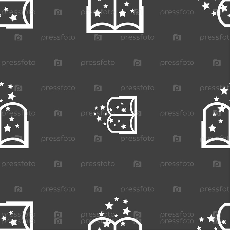 Магическая книга символ. Бесшовный узор на сером фоне. Вектор