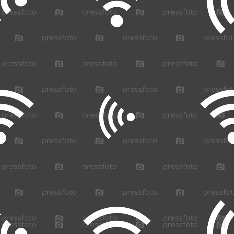 Знак Wi-Fi. Символ Wi-fi. Иконка зоны беспроводной сети. Бесшовный узор на сером фоне. Вектор