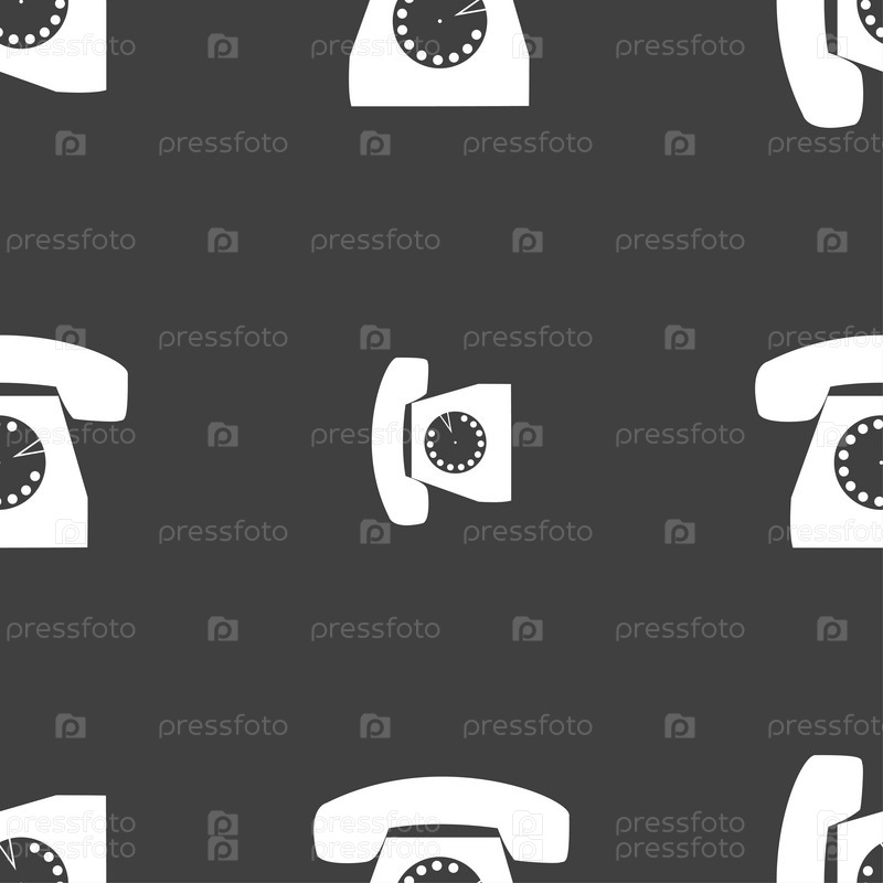 Ретро телефон значок символа. Бесшовный узор на сером фоне. Вектор