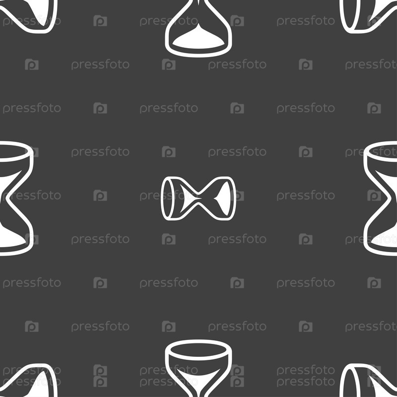 Значок песочных часов. Бесшовный узор на сером фоне. Вектор