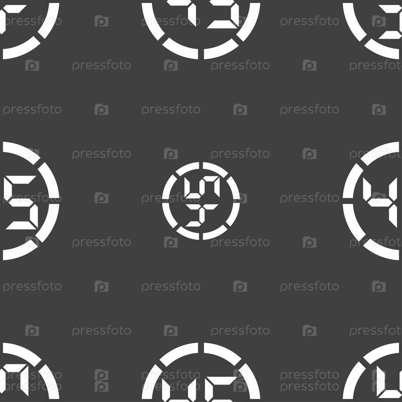 Значок секундомера. Бесшовный узор на сером фоне. Вектор