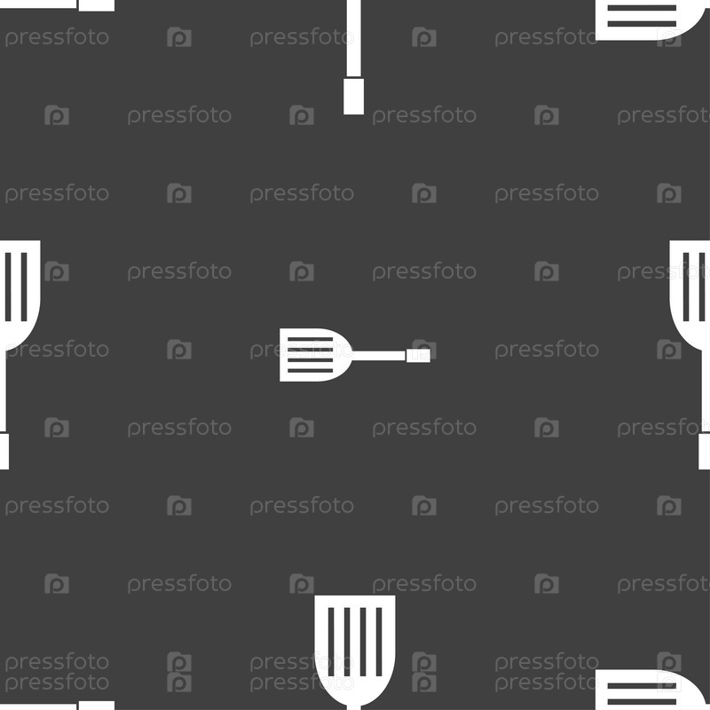 Кухонные приборы значок знак. Бесшовный узор на сером фоне. Вектор