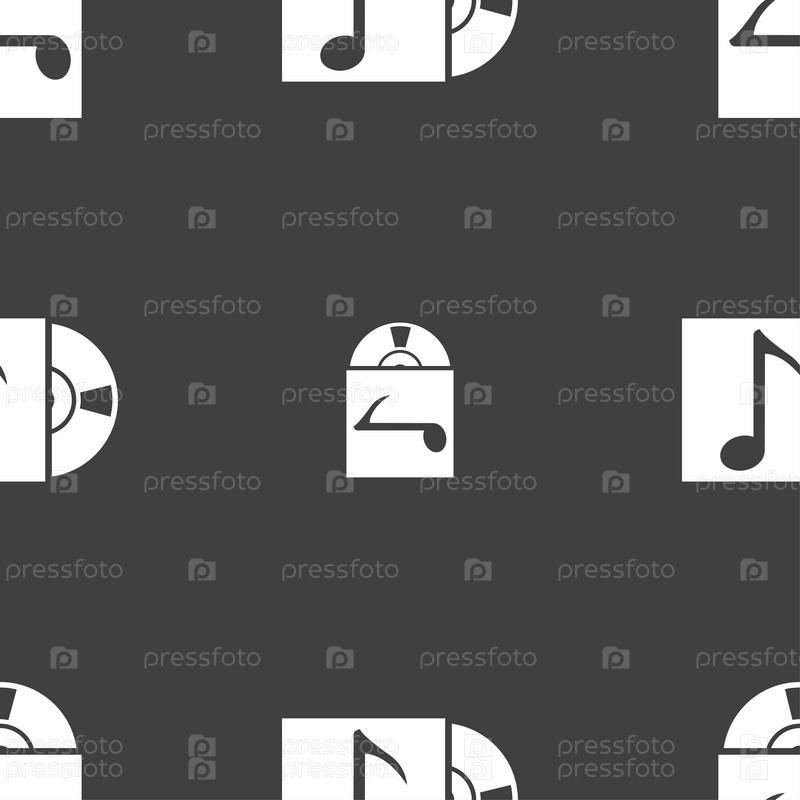 Знак значка CD-плеера. Бесшовный рисунок на сером фоне. Вектор