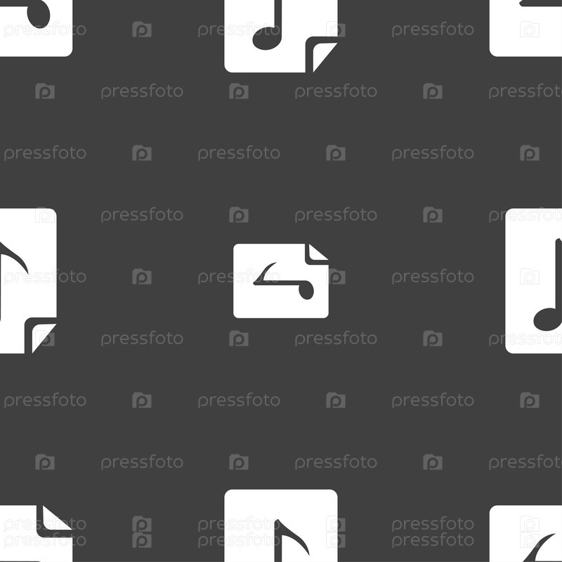 Аудио, MP3 файл на значке Знак. Бесшовный шаблон на сером фоне. Вектор