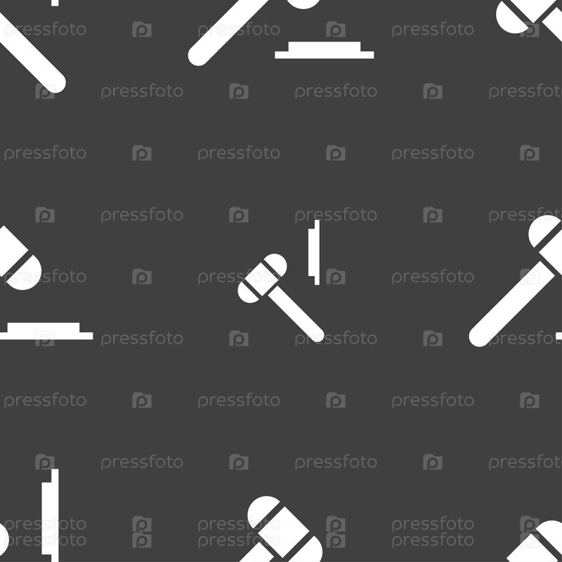 Судья молот значок. Бесшовный узор на сером фоне. Вектор