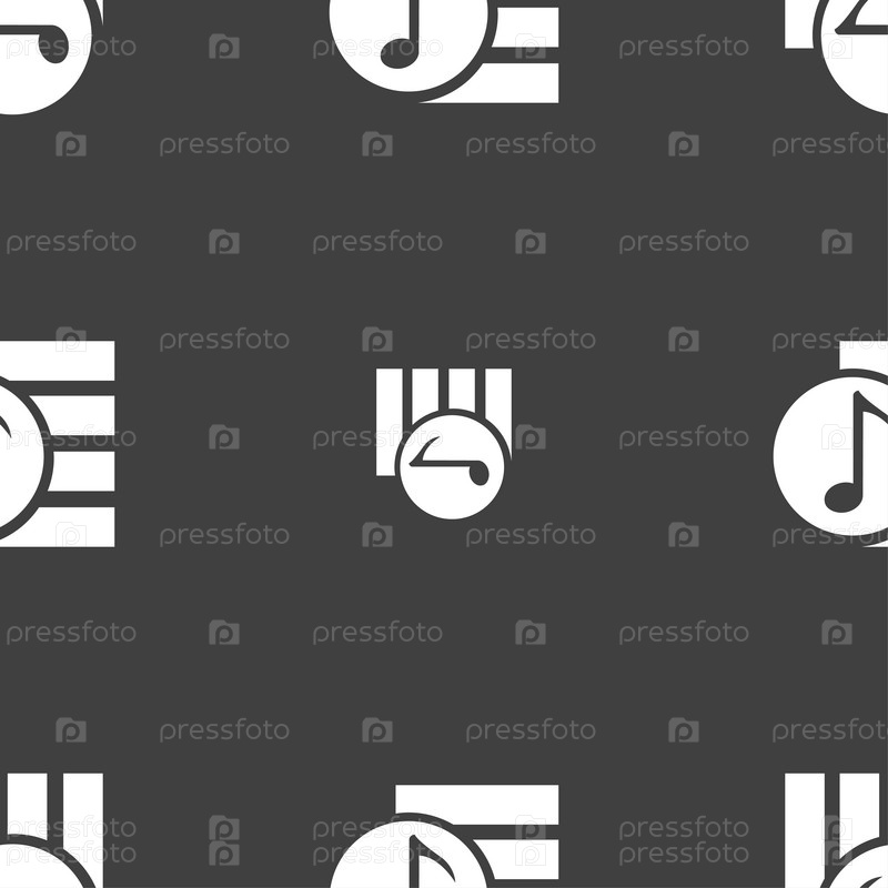 Аудио, MP3 файл на значке Знак. Бесшовный шаблон на сером фоне. Вектор