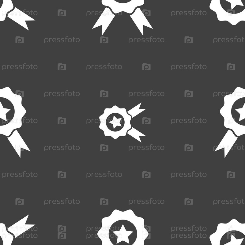 Премия, Медаль Почета значок знак. Бесшовный узор на сером фоне. Вектор