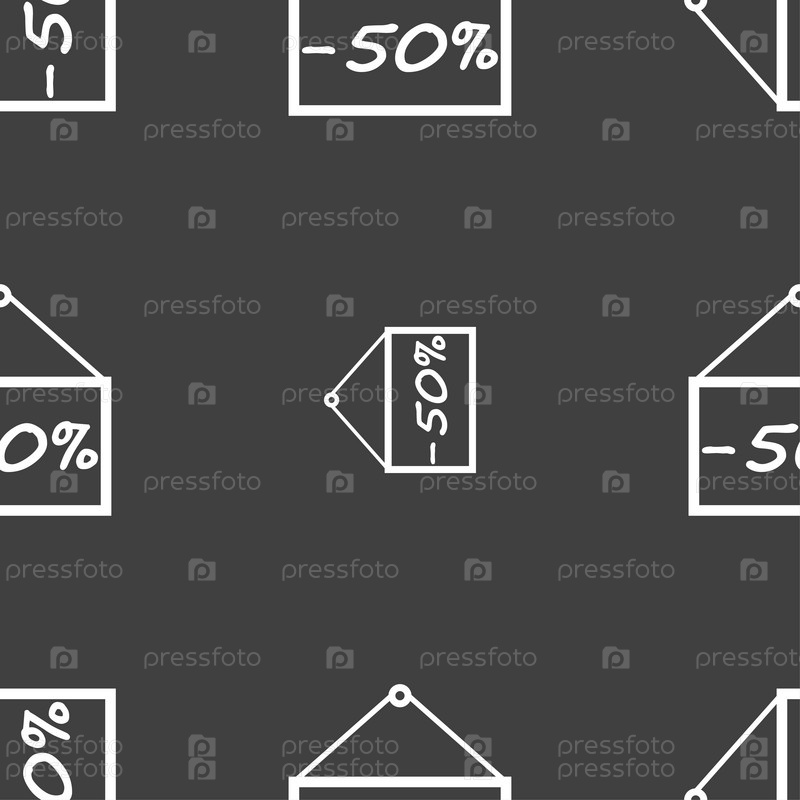 50 скидка. Бесшовный узор на сером фоне. Вектор