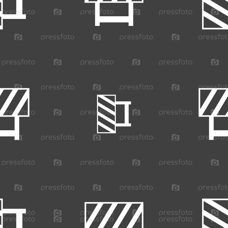 Дорожный знак барьер. Бесшовный узор на сером фоне. Вектор