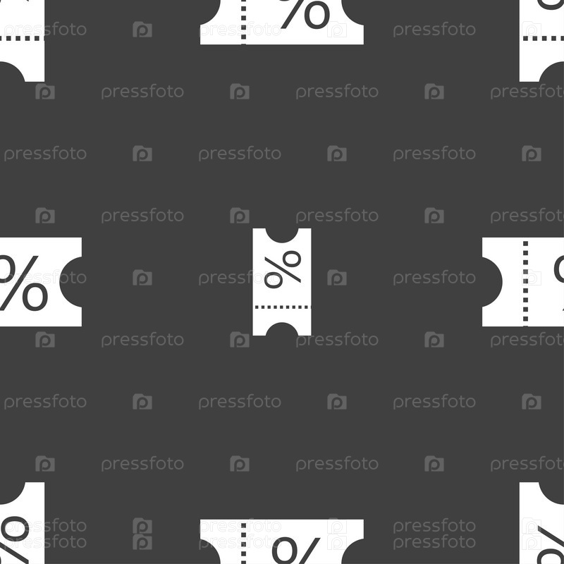 Билет со скидкой значок знак. Бесшовный узор на сером фоне. Вектор