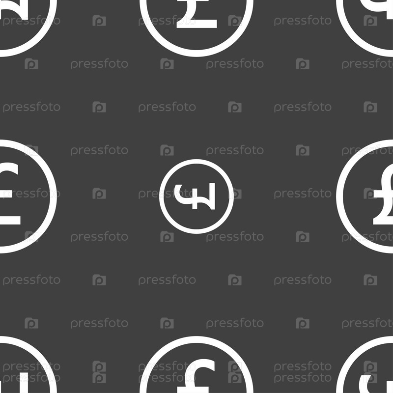 Знак фунта стерлингов значок. Бесшовный узор на сером фоне. Вектор
