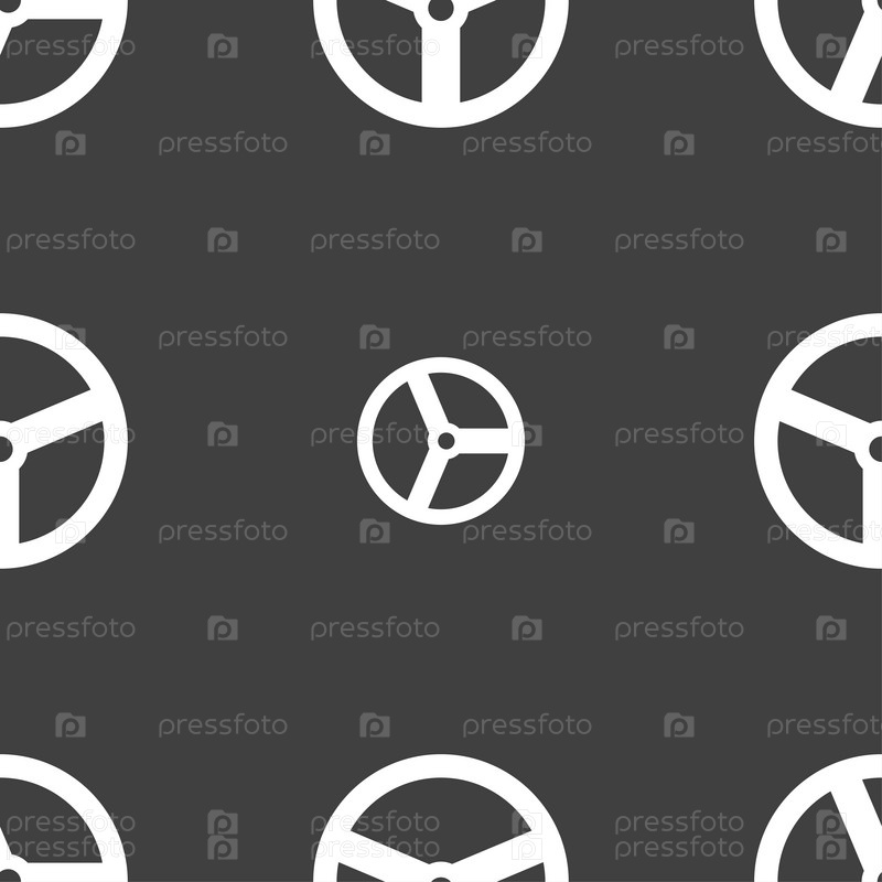 Рулевое колесо значок знак. Бесшовный узор на сером фоне. Вектор