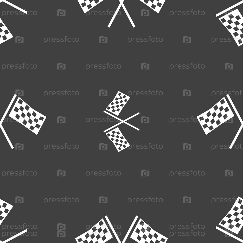 Гонка закончить флаг значок знак. Бесшовный узор на сером фоне. Вектор