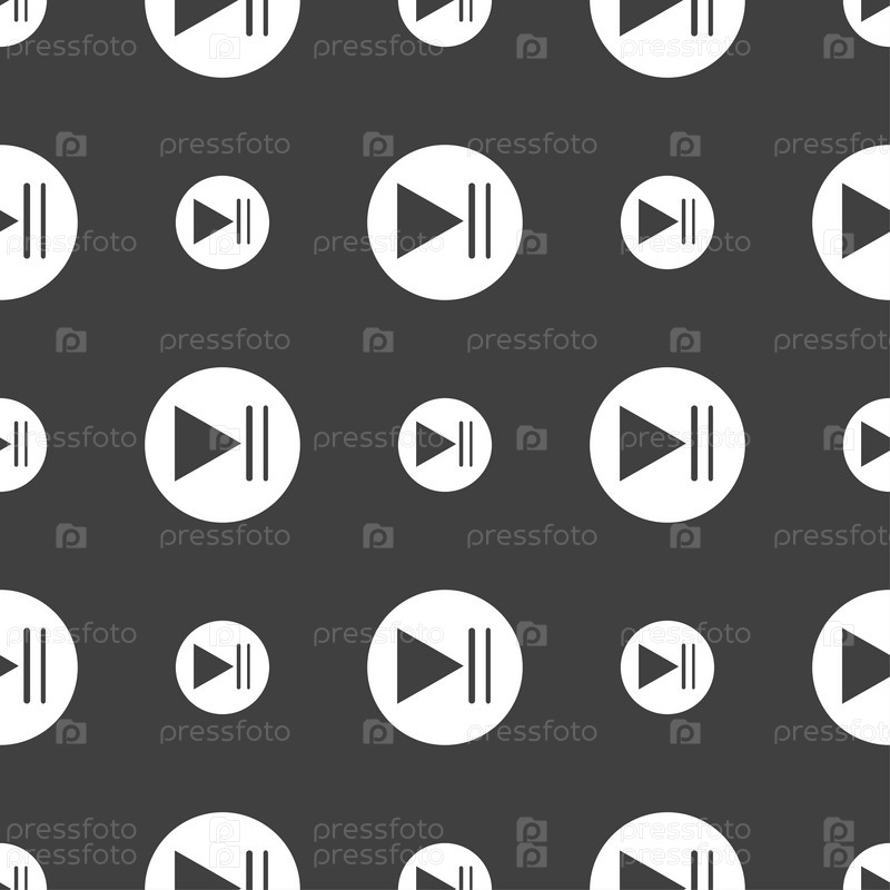 Играть значок кнопки. Бесшовный узор на сером фоне. Вектор