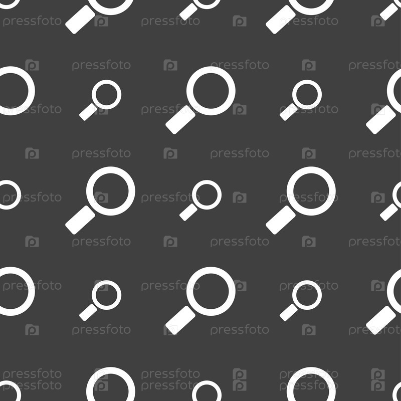 Значок лупы стекла знак. Зум кнопка инструмент. Навигация Поиск символа. Бесшовный узор на сером фоне. Вектор
