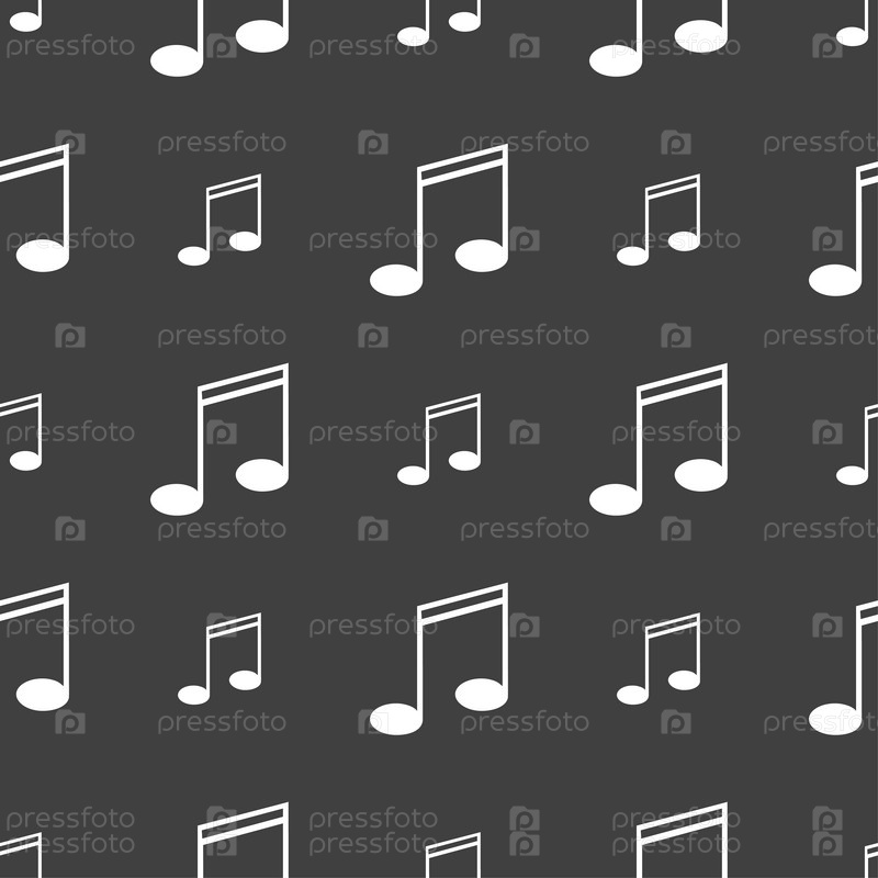 Музыка Примечание знак значок. Музыкальным символом. Бесшовный узор на сером фоне. Вектор