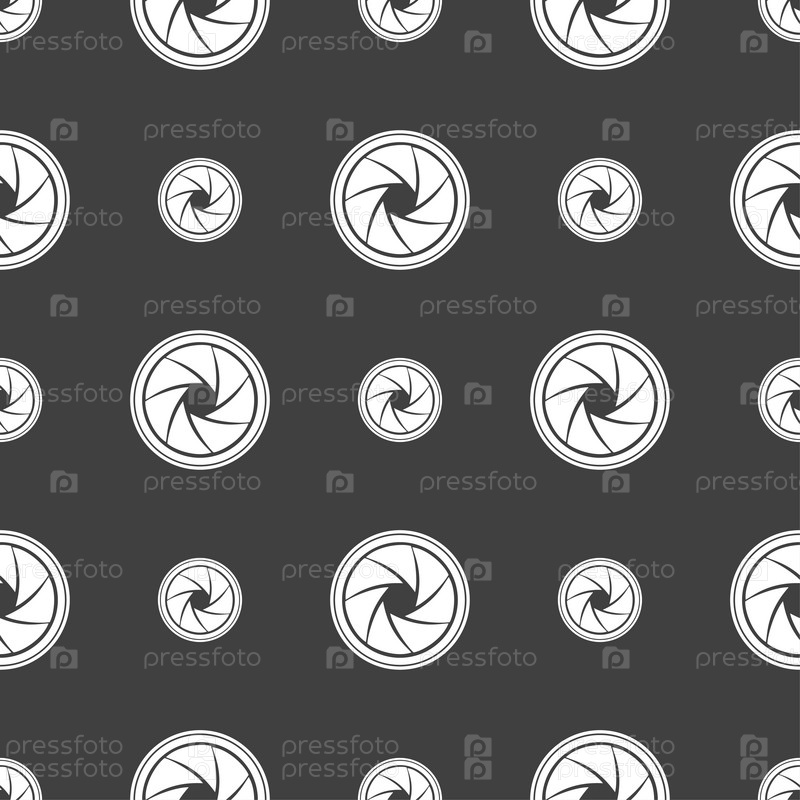 Диафрагма значок. Диафрагма знак. Бесшовный узор на сером фоне. Вектор