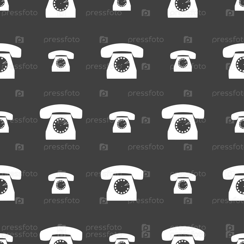 Ретро телефон значок символа. Бесшовный узор на сером фоне. Вектор