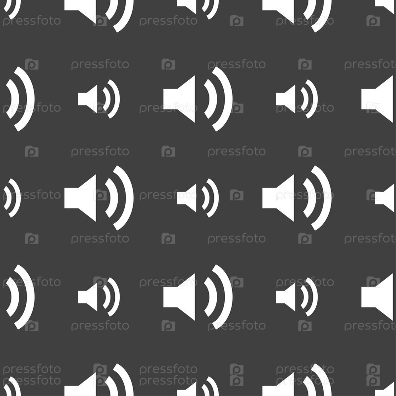 Значок знак громкости динамика. Символ звука. Бесшовный узор на сером фоне. Вектор