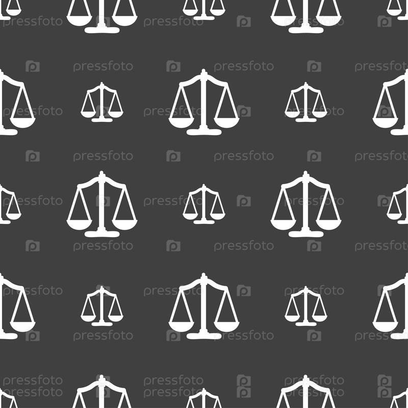 Весы баланс. Бесшовный узор на сером фоне. Вектор