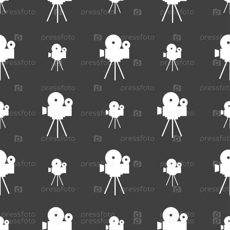 Видео камеры знак. Бесшовный узор на сером фоне. Вектор