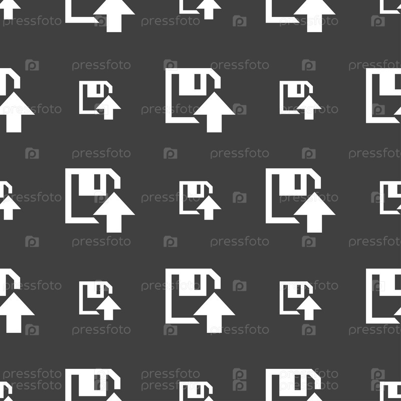 Значок дискеты. Плоский современный дизайн. Бесшовный узор на сером фоне. Вектор