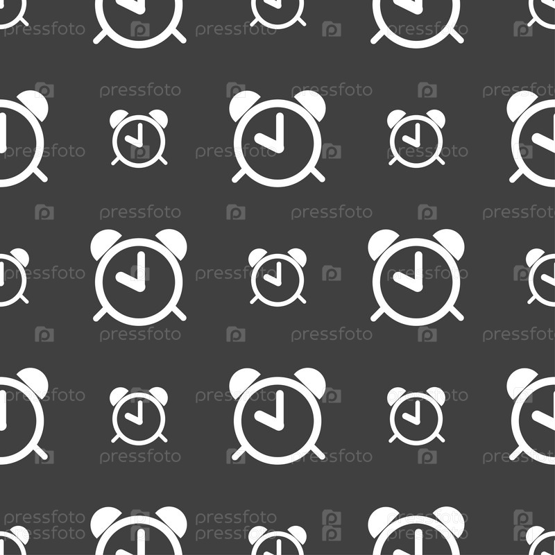 Будильник знак значок. Звонок будильник символ. Бесшовный узор на сером фоне. Вектор
